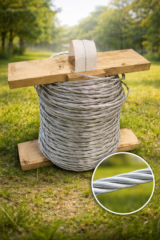 Deze getorste spandraad wordt veel gebruikt door paardenhouders, maneges en professionele weidebouwers.